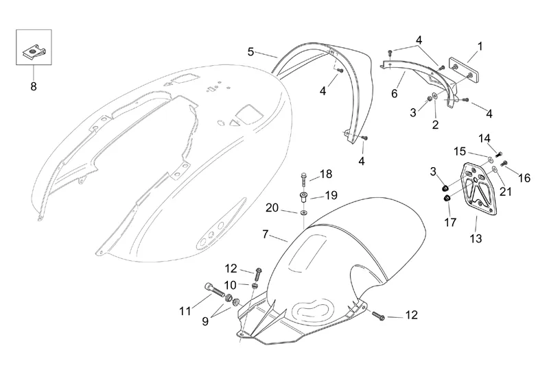 Zadní kryty, blatník