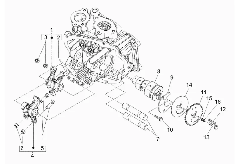 Vačková hřídel, vahadla