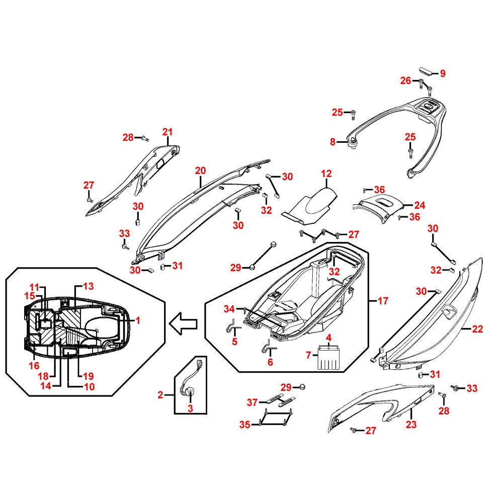 Podsedlový prostor, zadní plasty
