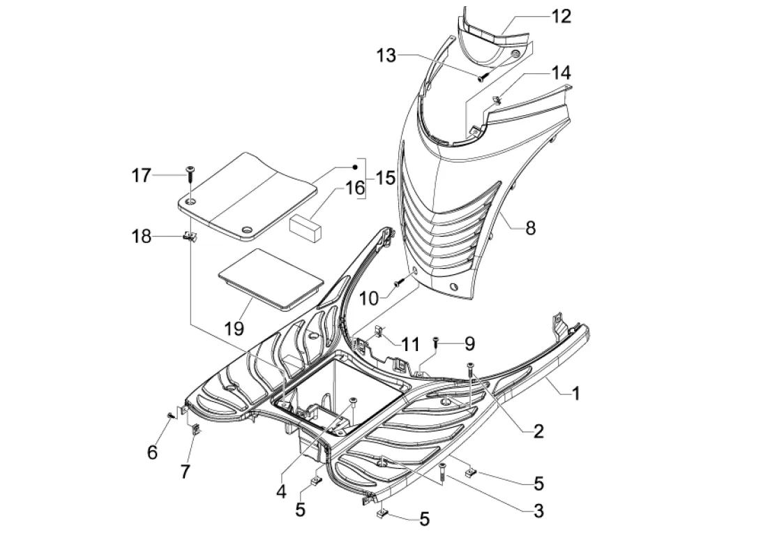 Díly přímo z výroby na Piaggio Carnaby 125 do posledního šroubku.