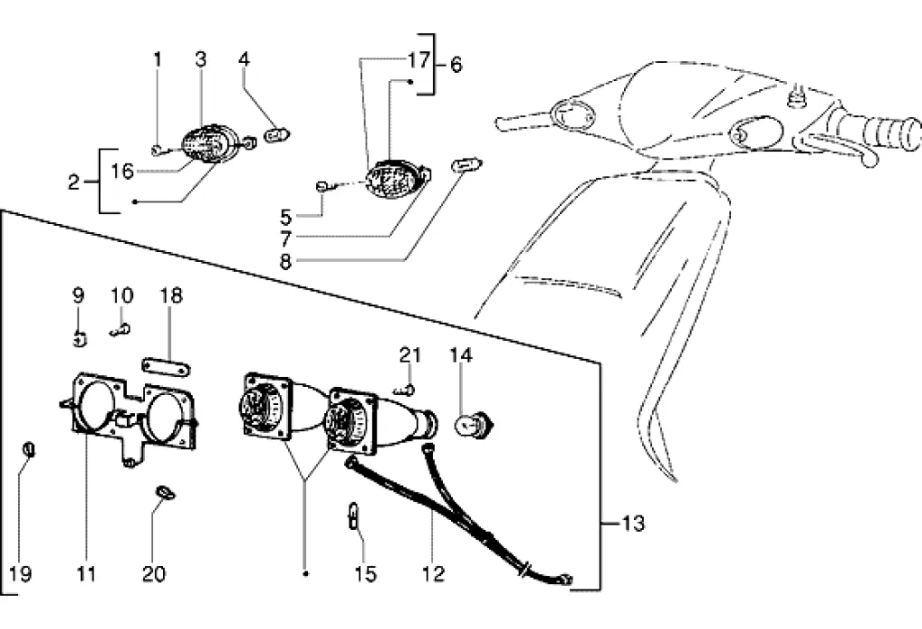Plasty řídítek, tachometr