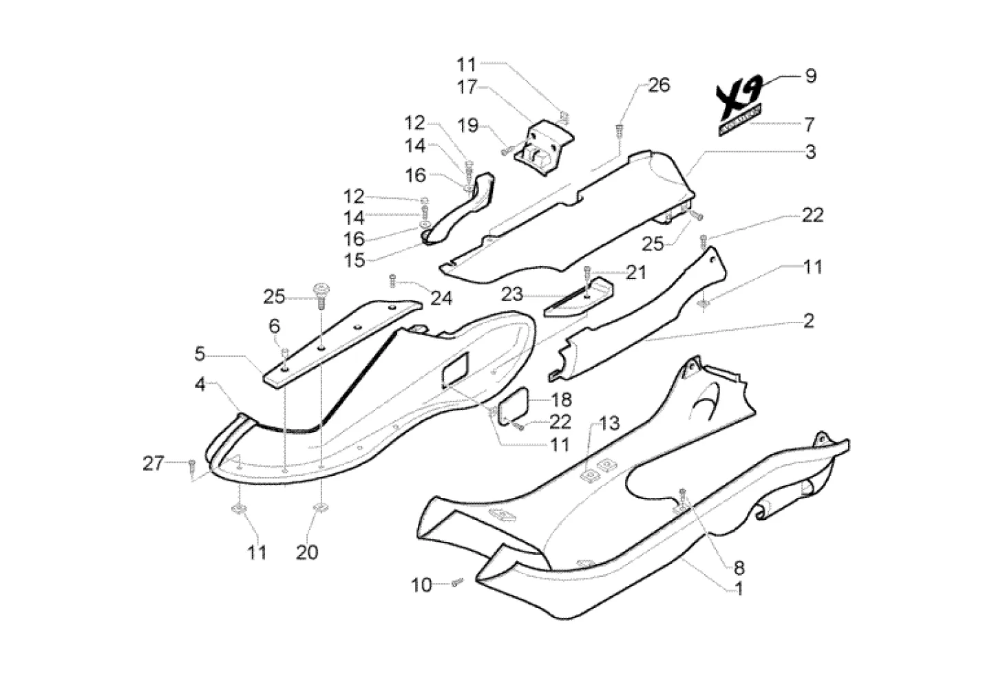 Díly přímo z výroby na Piaggio X9 250 do posledního šroubku.