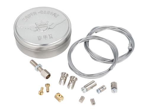 Vysoce kvalitní opravná sada lanek obsahující univerzální vnitřní lanka, různé koncovky a nastavovací šrouby. Ideální pro opravy plynových, brzdových a spojkových lanek u široké škály mopedů a motocyklů.
