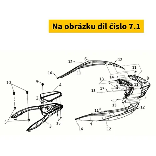 Originální díl 87126-LH1-000 od výrobce SYM. Pro objednání dílu je nutná platba předem. Do poznámky objednávky vložte VIN vašeho skútru, po ověření z naší strany pošleme odkaz pro platbu.