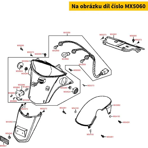 Originální díl MX5060 od výrobce Kymco. Pro objednání dílu je nutná platba předem. Do poznámky objednávky vložte VIN vašeho skútru, po ověření z naší strany pošleme odkaz pro platbu.