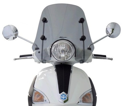 Kvalitní letní plexi od italského výrobce Fabbri pro Piaggio Vespa LX 125-150ccm r.v. 2003-2014 a Liberty 50-125ccm r.v. 2005-2012. Šíře 455mm, výška 300mm. Plexi se dodává i s úchyty.