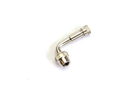 Nástavec rovného ventilku na 90 stupňů. Díky této vychytávce již nebudete proklínat nafukování pneu s rovným ventilkem kde je málo místa. Toto se vždy stává u malých průměrů ráfků kde je ventilek krátký a člověk se k němu s těží dostává s nafukovací pistolí.