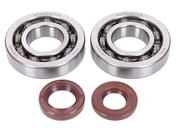 Sada ložisek a gufer na klikovou hřídel s kovovou klecí od výrobce Naraku. Pro vertikální motory Peugeot 100ccm 2T.